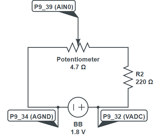 Voltage Range: The ADC on the BBB can read voltages from 0V up to 1.8V. It is crucial to note that applying a voltage higher than 1.8V directly to an ADC pin can damage the board. Voltage dividers or other protective circuits should be used if you're measuring voltages higher than 1.8V.
