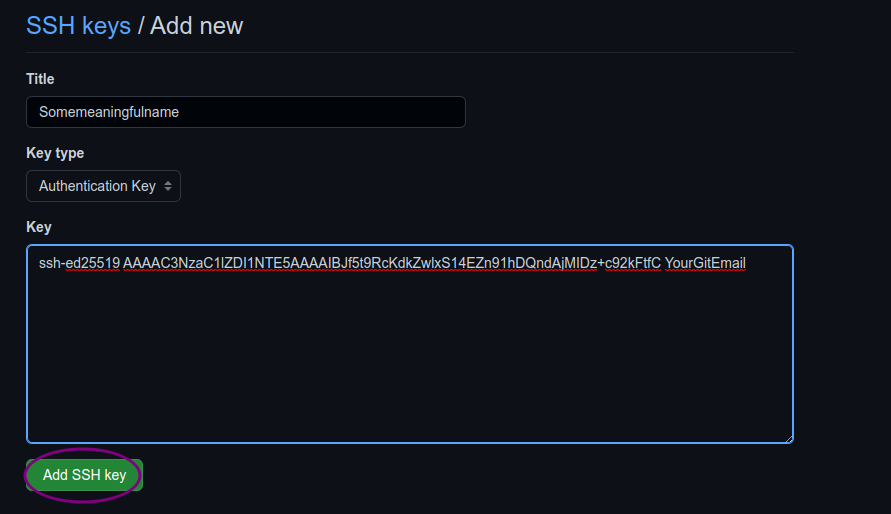 ssh-ed25519 ... YourGitEmailto your clipboard and follow the screenshots below.