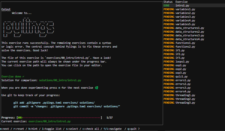 Pylings, made by yours truly, is an interactive Python learning tool heavily inspired by the renowned Rustlings. It provides small, focused exercises to help you learn Python by fixing code snippets and experimenting with them.